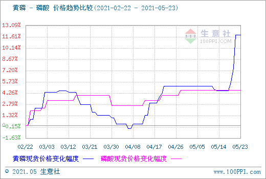 黃磷漲價,必定會對以黃磷為原料的相關的產(chǎn)品,造成一定影響,導致六偏磷酸鈉、三聚磷酸鈉、焦磷酸鈉等等磷酸鹽產(chǎn)品大幅度上漲。進入到5月下旬,黃磷價格出現(xiàn)快速上漲,受云南地區(qū)干旱,水少,限電影響,部分地區(qū)黃磷企業(yè)開功率不足20%!近日限電不但沒有緩解,反而越來越嚴重。黃磷裝置停車較多,現(xiàn)貨緊張情況加劇,部分廠家已暫時停止對外報價。需求方面,下游草甘膦價格持續(xù)上行,對高價黃磷接受度尚可,對黃磷價格的上漲起到了一定的助推作用。截止目前云南黃磷主流報價在25000元/噸左右;四川地區(qū)主流報價在23000-25000元/噸左右;貴州地區(qū)主流報價在21000元/噸左右。