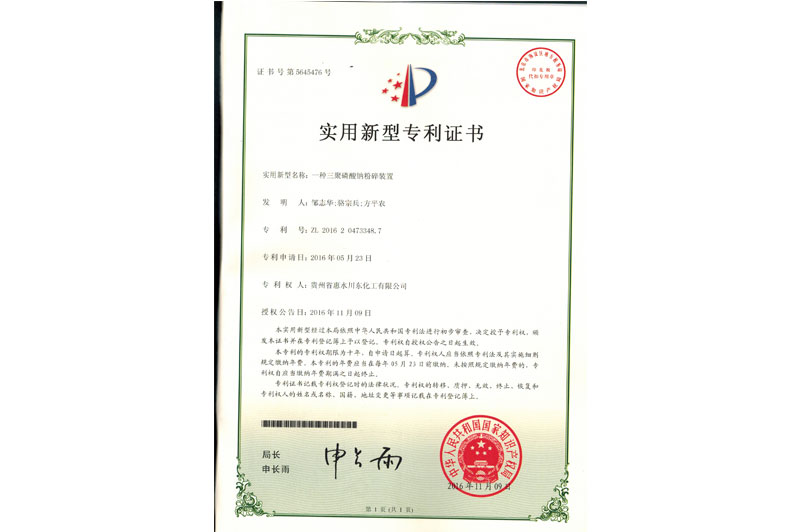 改新型使用專利目的在于:提供一種結構簡單、使用方便、粉碎效果好的三聚磷酸鈉粉碎裝置。從而更全面地滿足不同客戶對堆密度的要求。